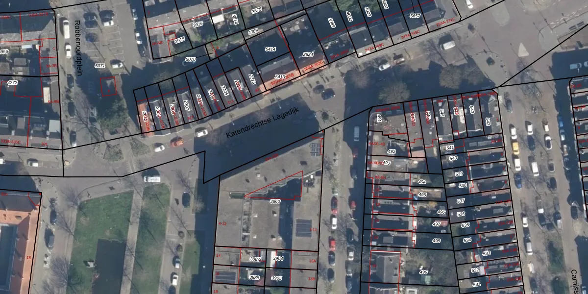Katendrechtse Lagedijk 308 is gelegen op kadastraal perceel CLS00H3860. Deze kadastrale aanduiding is uniek en wordt gebruikt door het Kadaster om eigendomsrechten en andere zakelijke rechten vast te leggen. Het perceel maakt onderdeel uit van de kadastrale gemeente Charlois.