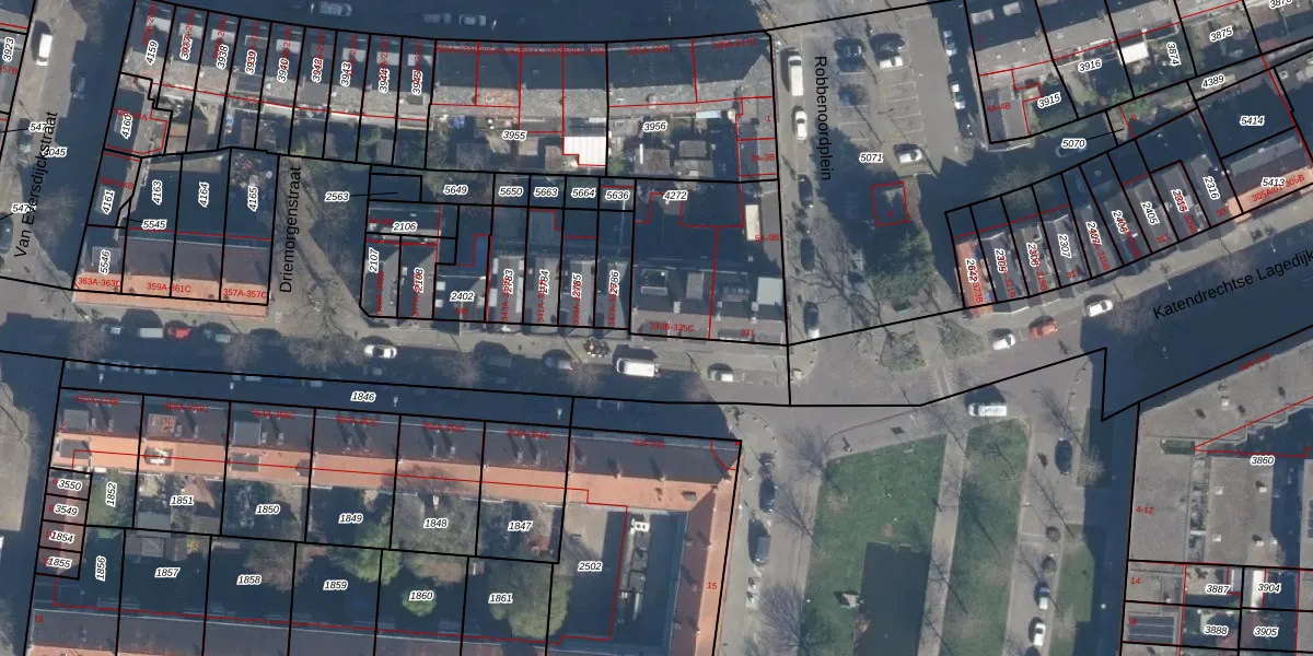 Het perceel waarop Katendrechtse Lagedijk 335-A staat heeft een oppervlakte van 562 m². Dit is een groot perceel. De perceeloppervlakte wordt geregistreerd door het Kadaster. Gedetailleerde informatie over de maten van dit perceel kunt u vinden in het rapport Kadastrale kaart met maatvoering van Katendrechtse Lagedijk 335-A.