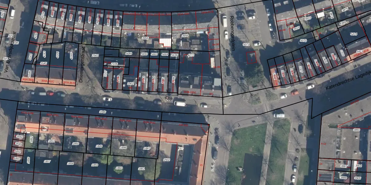 Het perceel waarop Katendrechtse Lagedijk 335-B staat heeft een oppervlakte van 562 m². Dit is een groot perceel. De perceeloppervlakte wordt geregistreerd door het Kadaster. Gedetailleerde informatie over de maten van dit perceel kunt u vinden in het rapport Kadastrale kaart met maatvoering van Katendrechtse Lagedijk 335-B.