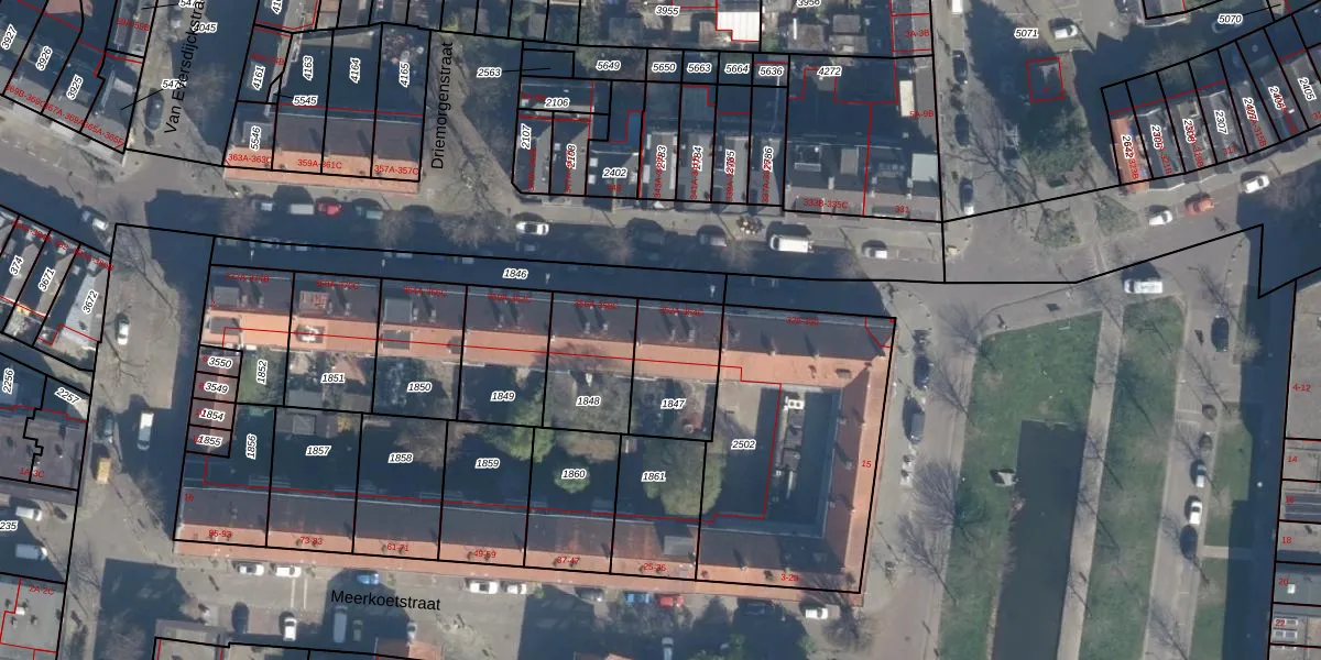 Het adres is gelegen op perceel 1847 in de sectie H en de kadastrale gemeente Charlois. De kadastrale aanduiding is aldus CLS00-H-1847. Het perceel is 273 m² groot. Dat is kleiner dan de gemiddelde perceeloppervlakte in Charlois, dat op 1147,69 m² ligt. Het kleinste perceel in de kadastrale gemeente is 0 m² groot. De grootste perceeloppervlakte is 1,09 km². Op het perceel liggen in totaal 6 adressen. De huidige grenzen van het perceel zijn digitaal in de Basisregistratie Kadaster (BRK) geregistreerd op 10-06-2003.