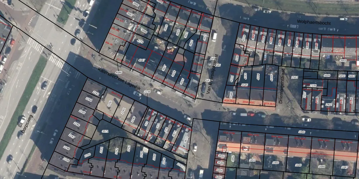Katendrechtse Lagedijk 367-A is gelegen op kadastraal perceel CLS00E3925. Deze kadastrale aanduiding is uniek en wordt gebruikt door het Kadaster om eigendomsrechten en andere zakelijke rechten vast te leggen. Het perceel maakt onderdeel uit van de kadastrale gemeente Charlois.