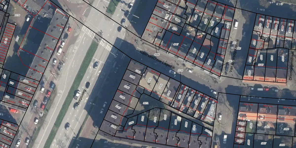 Het perceel waarop Katendrechtse Lagedijk 400-B staat heeft een oppervlakte van 166 m². Dit is een middelgroot perceel. De perceeloppervlakte wordt geregistreerd door het Kadaster. Gedetailleerde informatie over de maten van dit perceel kunt u vinden in het rapport Kadastrale kaart met maatvoering van Katendrechtse Lagedijk 400-B.