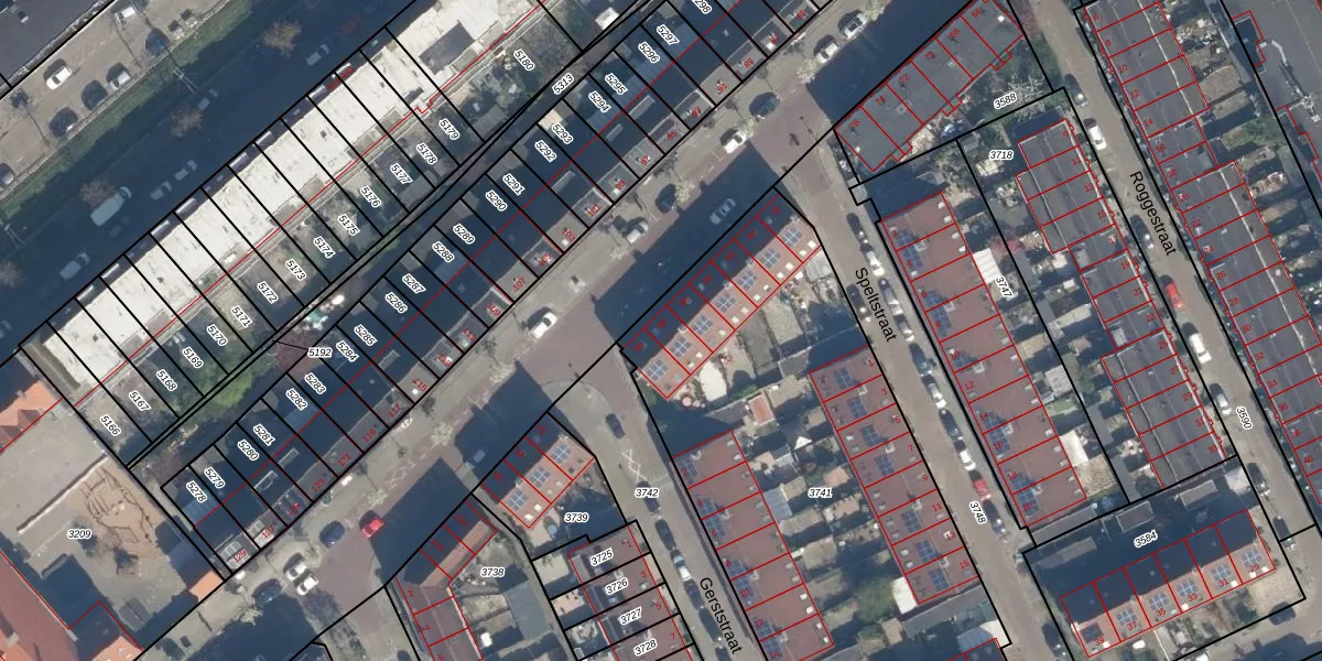 Het adres is gelegen op perceel 3741 in de sectie H en de kadastrale gemeente Charlois. De kadastrale aanduiding is aldus CLS00-H-3741. De oppervlakte van het perceel is 2821 m². Dat is groter dan gemiddeld in Charlois, waar de gemiddelde perceeloppervlakte op 1148,01 m² ligt. Het grootste perceel in de kadastrale gemeente is 1,09 km². Het kleinste perceel heeft een oppervlakte van 0 m². Er zijn 28 adressen aanwezig op het perceel. In de Basisregistratie Kadaster (BRK) werden de grenzen van het perceel geregistreerd op 10-06-2003.