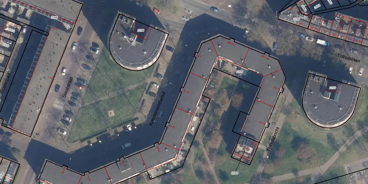 Het adres is gelegen op perceel 2209 in de sectie P en de kadastrale gemeente Rotterdam. De kadastrale aanduiding is aldus RTD05-P-2209. De oppervlakte van het perceel is 3084 m². Dat is groter dan gemiddeld in Rotterdam, waar de gemiddelde perceeloppervlakte op 1401,79 m² ligt. Het kleinste perceel in de kadastrale gemeente is 0 m² groot. De grootste perceeloppervlakte is 36,8 ha. Op het perceel zijn 82 adressen aanwezig. De huidige grenzen van het perceel zijn digitaal in de Basisregistratie Kadaster (BRK) geregistreerd op 09-08-2022.