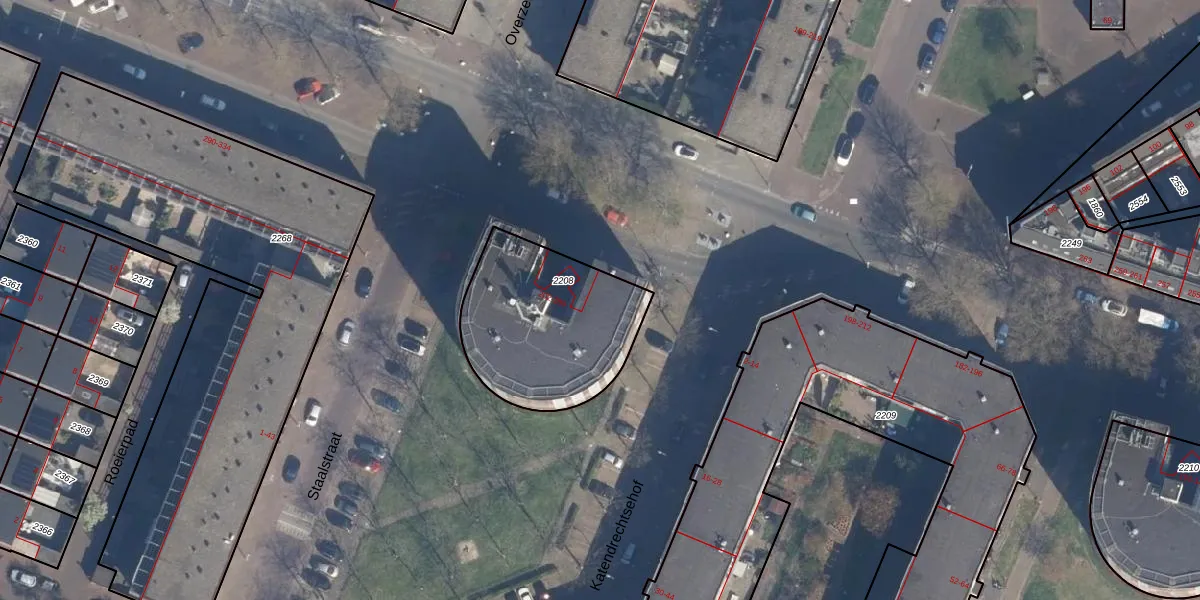 Het perceel waarop Katendrechtsestraat 202 staat heeft een oppervlakte van 665 m². Dit is een groot perceel. De perceeloppervlakte wordt geregistreerd door het Kadaster. Gedetailleerde informatie over de maten van dit perceel kunt u vinden in het rapport Kadastrale kaart met maatvoering van Katendrechtsestraat 202.