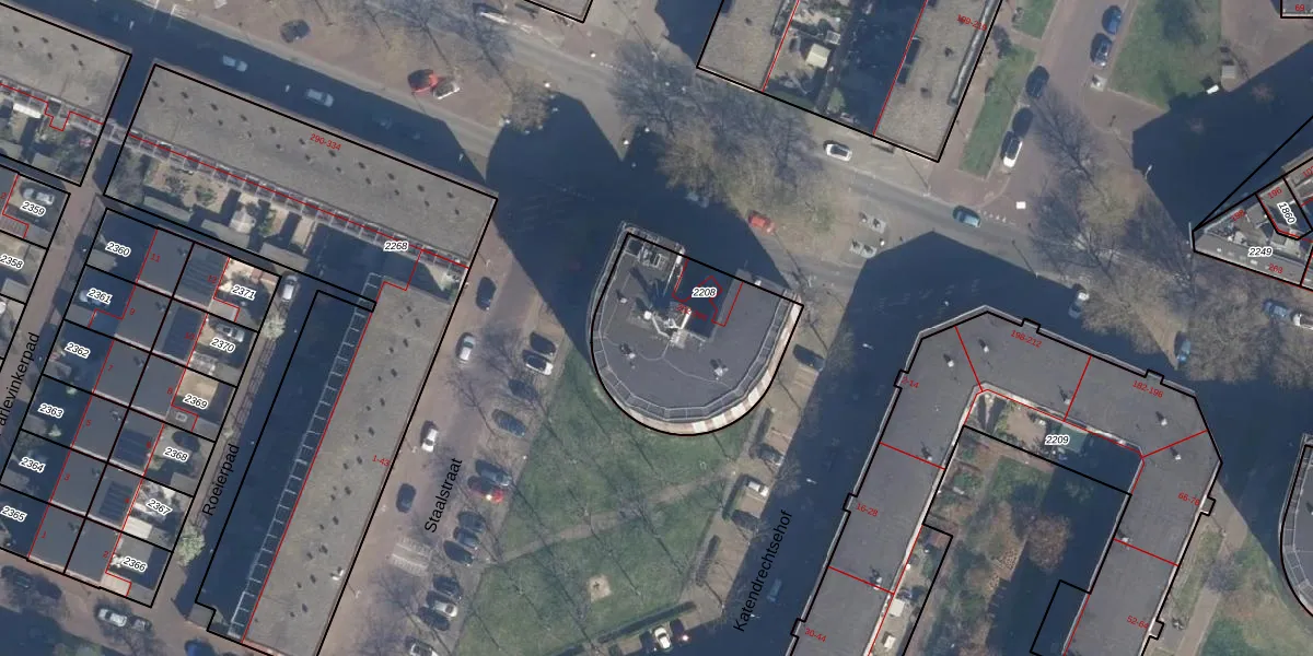 Het adres is gelegen op perceel 2208 in de sectie P en de kadastrale gemeente Rotterdam. De kadastrale aanduiding is aldus RTD05-P-2208. Het perceel is kleiner dan gemiddeld in Rotterdam. Het perceel is 665 m² groot, terwijl het gemiddelde ligt op 1401,79 m². Het grootste perceel in de kadastrale gemeente is 36,8 ha. Het kleinste perceel heeft een oppervlakte van 0 m². Op het perceel liggen in totaal 40 adressen. In de Basisregistratie Kadaster (BRK) werden de grenzen van het perceel geregistreerd op 04-06-2009.