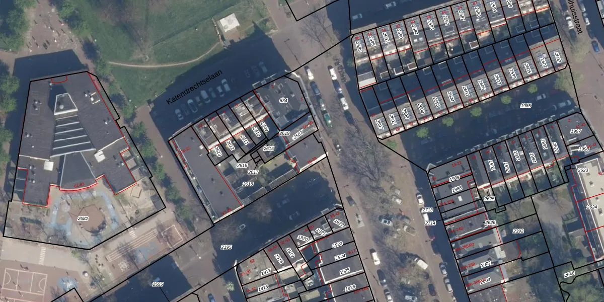Het perceel waarop Katendrechtsestraat 33 staat heeft een oppervlakte van 688 m². Dit is een groot perceel. De perceeloppervlakte wordt geregistreerd door het Kadaster. Gedetailleerde informatie over de maten van dit perceel kunt u vinden in het rapport Kadastrale kaart met maatvoering van Katendrechtsestraat 33.