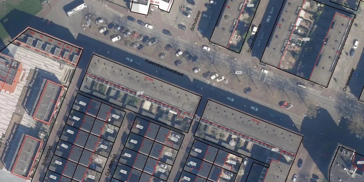 Katendrechtsestraat 360 is gelegen op kadastraal perceel RTD05P2267. Deze kadastrale aanduiding is uniek en wordt gebruikt door het Kadaster om eigendomsrechten en andere zakelijke rechten vast te leggen. Het perceel maakt onderdeel uit van de kadastrale gemeente Rotterdam.
