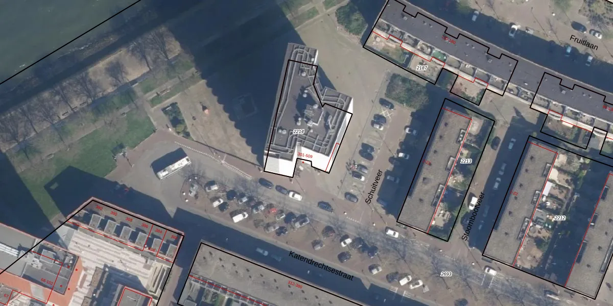 Katendrechtsestraat 509 is gelegen op kadastraal perceel RTD05P2214. Deze kadastrale aanduiding is uniek en wordt gebruikt door het Kadaster om eigendomsrechten en andere zakelijke rechten vast te leggen. Het perceel maakt onderdeel uit van de kadastrale gemeente Rotterdam.