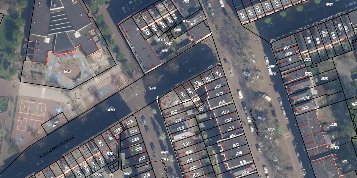 Het perceel waarop Katendrechtsestraat 60 staat heeft een oppervlakte van 49 m². Dit is een klein perceel. De perceeloppervlakte wordt geregistreerd door het Kadaster. Gedetailleerde informatie over de maten van dit perceel kunt u vinden in het rapport Kadastrale kaart met maatvoering van Katendrechtsestraat 60.