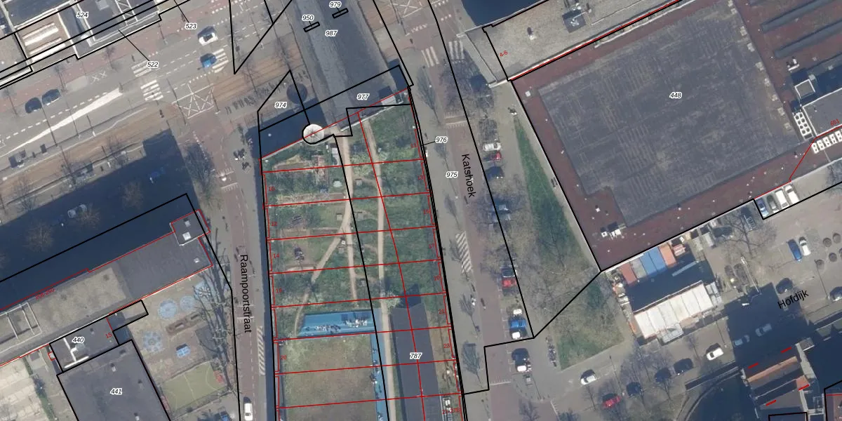 Het adres is gelegen op perceel 787 in de sectie AD en de kadastrale gemeente Rotterdam. De kadastrale aanduiding is aldus RTD08-AD-787. Het perceel is met 2070 m² relatief groot. Het gemiddelde ligt in de kadastrale gemeente Rotterdam op 689,2 m². Het kleinste perceel in de kadastrale gemeente is 0 m² groot. De grootste perceeloppervlakte is 4,0 ha. Op het perceel zijn 16 adressen aanwezig. De laatste wijziging in het de Basisregistratie Kadaster (BRK) was op 10-07-2003.