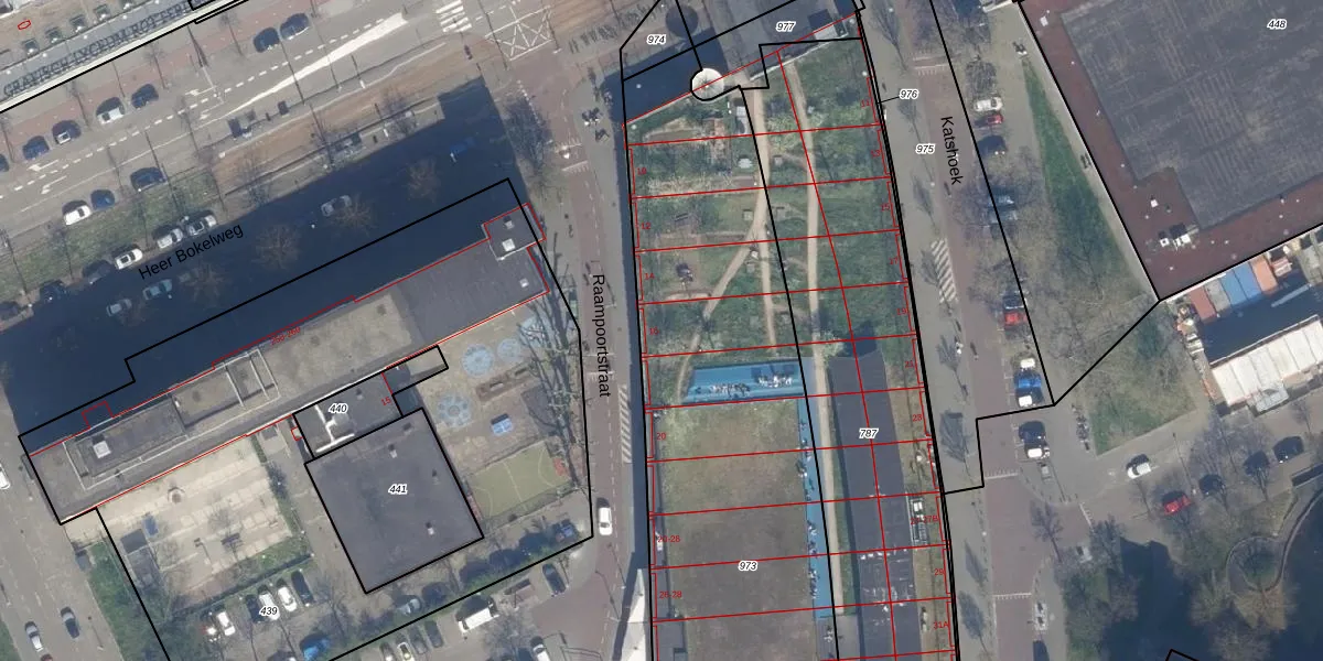 Het adres is gelegen op perceel 973 in de sectie AD en de kadastrale gemeente Rotterdam. De kadastrale aanduiding is aldus RTD08-AD-973. Het perceel is met 3546 m² relatief groot. Het gemiddelde ligt in de kadastrale gemeente Rotterdam op 689,2 m². Het kleinste perceel in de kadastrale gemeente is 0 m² groot. De grootste perceeloppervlakte is 4,0 ha. Op het perceel liggen in totaal 13 adressen. De laatste wijziging in het de Basisregistratie Kadaster (BRK) was op 23-07-2021.