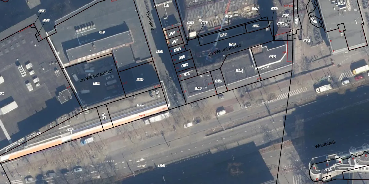 Het perceel waarop het adres ligt is RTD04-AG-1164. De afkorting 'RTD04' staat voor kadastrale gemeente Rotterdam. Het perceel is kleiner dan gemiddeld in Rotterdam. Het perceel is 227 m² groot, terwijl het gemiddelde ligt op 1239,97 m². Het grootste perceel in de kadastrale gemeente is 17,3 ha. Het kleinste perceel heeft een oppervlakte van 0 m². Op het perceel liggen in totaal 3 adressen. De huidige grenzen van het perceel zijn digitaal in de Basisregistratie Kadaster (BRK) geregistreerd op 09-01-2003.