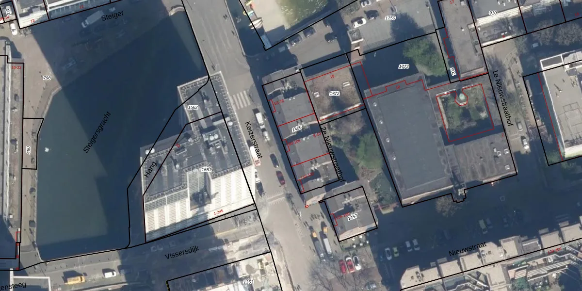 Het perceel waarop Keizerstraat 80 staat heeft een oppervlakte van 554 m². Dit is een groot perceel. De perceeloppervlakte wordt geregistreerd door het Kadaster. Gedetailleerde informatie over de maten van dit perceel kunt u vinden in het rapport Kadastrale kaart met maatvoering van Keizerstraat 80.