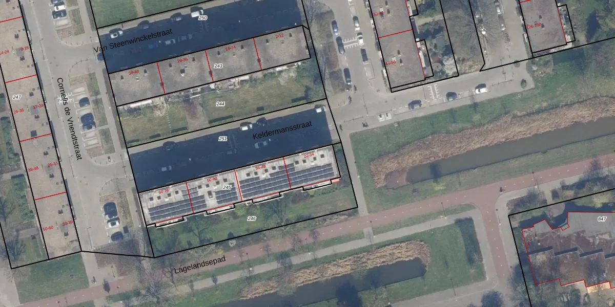 Het perceel waarop Keldermansstraat 30 staat heeft een oppervlakte van 755 m². Dit is een groot perceel. De perceeloppervlakte wordt geregistreerd door het Kadaster. Gedetailleerde informatie over de maten van dit perceel kunt u vinden in het rapport Kadastrale kaart met maatvoering van Keldermansstraat 30.