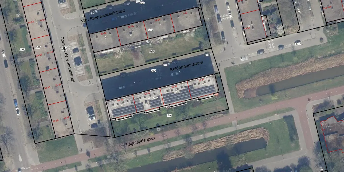 Het perceel waarop Keldermansstraat 38 staat heeft een oppervlakte van 755 m². Dit is een groot perceel. De perceeloppervlakte wordt geregistreerd door het Kadaster. Gedetailleerde informatie over de maten van dit perceel kunt u vinden in het rapport Kadastrale kaart met maatvoering van Keldermansstraat 38.