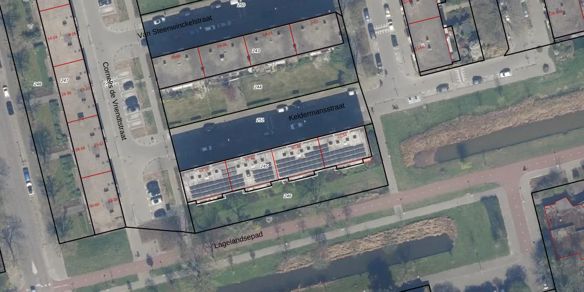 Het perceel waarop Keldermansstraat 40 staat heeft een oppervlakte van 755 m². Dit is een groot perceel. De perceeloppervlakte wordt geregistreerd door het Kadaster. Gedetailleerde informatie over de maten van dit perceel kunt u vinden in het rapport Kadastrale kaart met maatvoering van Keldermansstraat 40.