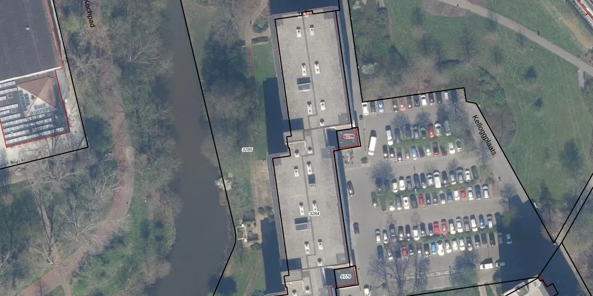 Het perceel waarop Kelloggplaats 886 staat heeft een oppervlakte van 2988 m². Dit is een zeer groot perceel. De perceeloppervlakte wordt geregistreerd door het Kadaster. Gedetailleerde informatie over de maten van dit perceel kunt u vinden in het rapport Kadastrale kaart met maatvoering van Kelloggplaats 886.