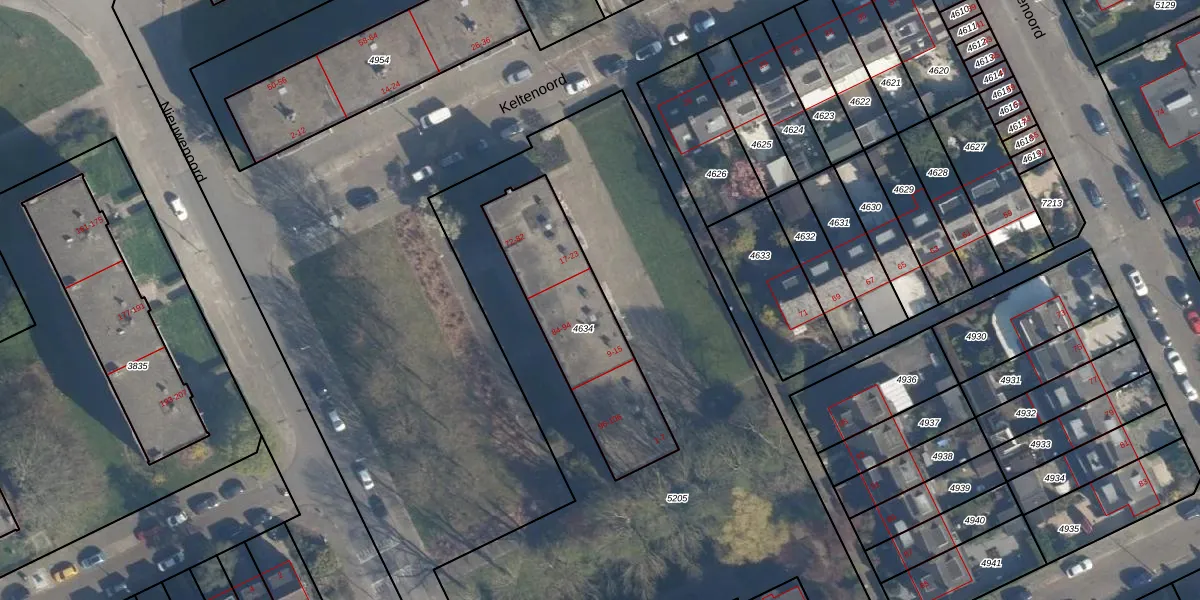 Het perceel waarop Keltenoord 13 staat heeft een oppervlakte van 594 m². Dit is een groot perceel. De perceeloppervlakte wordt geregistreerd door het Kadaster. Gedetailleerde informatie over de maten van dit perceel kunt u vinden in het rapport Kadastrale kaart met maatvoering van Keltenoord 13.