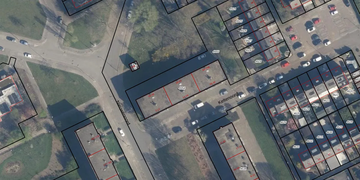 Het perceel waarop Keltenoord 24 staat heeft een oppervlakte van 595 m². Dit is een groot perceel. De perceeloppervlakte wordt geregistreerd door het Kadaster. Gedetailleerde informatie over de maten van dit perceel kunt u vinden in het rapport Kadastrale kaart met maatvoering van Keltenoord 24.