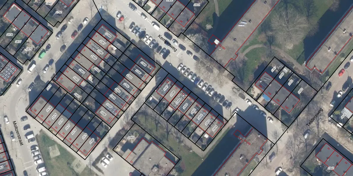 Gebruik de zoekbalk of klik op een perceel voor informatie over de adressen binnen dit perceel.