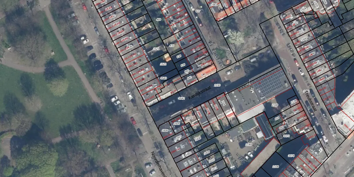 Kerdijkstraat 5-B is gelegen op kadastraal perceel RTD10AB3542. Deze kadastrale aanduiding is uniek en wordt gebruikt door het Kadaster om eigendomsrechten en andere zakelijke rechten vast te leggen. Het perceel maakt onderdeel uit van de kadastrale gemeente Rotterdam.