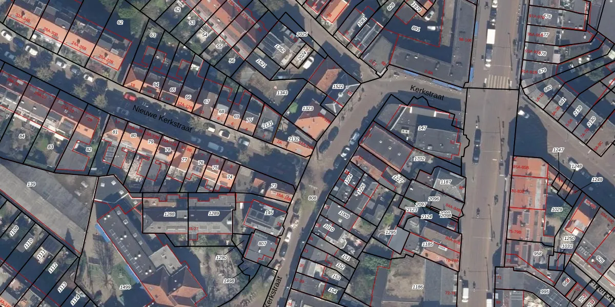 Het perceel waarop Kerkstraat 14-A staat heeft een oppervlakte van 102 m². Dit is een middelgroot perceel. De perceeloppervlakte wordt geregistreerd door het Kadaster. Gedetailleerde informatie over de maten van dit perceel kunt u vinden in het rapport Kadastrale kaart met maatvoering van Kerkstraat 14-A.