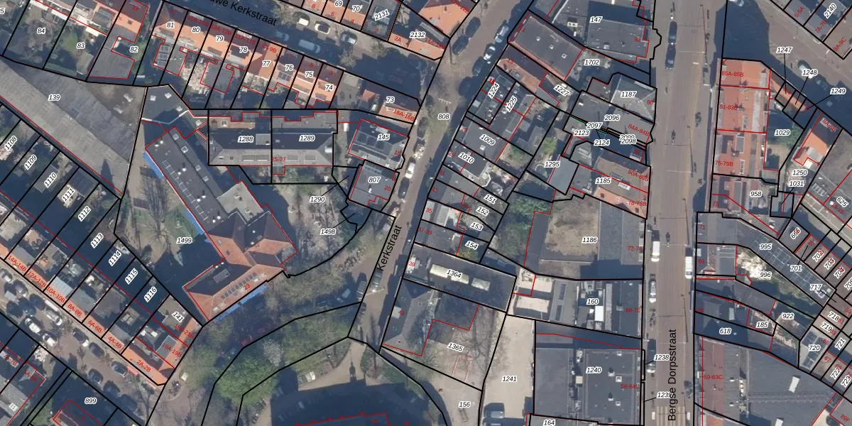 Het perceel waarop Kerkstraat 35 staat heeft een oppervlakte van 81 m². Dit is een klein perceel. De perceeloppervlakte wordt geregistreerd door het Kadaster. Gedetailleerde informatie over de maten van dit perceel kunt u vinden in het rapport Kadastrale kaart met maatvoering van Kerkstraat 35.