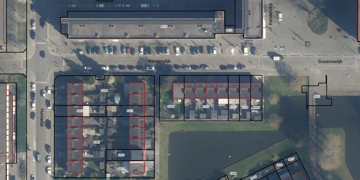 Kerstendijk 24 is gelegen op kadastraal perceel ISM01B6980. Deze kadastrale aanduiding is uniek en wordt gebruikt door het Kadaster om eigendomsrechten en andere zakelijke rechten vast te leggen. Het perceel maakt onderdeel uit van de kadastrale gemeente IJsselmonde.