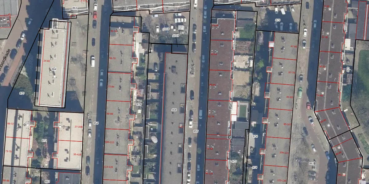 Het adres ligt op het perceel RTD04-AE-908, dat zich in de kadastrale gemeente Rotterdam bevindt. Het perceel is met 1865 m² relatief groot. Het gemiddelde ligt in de kadastrale gemeente Rotterdam op 1239,97 m². De grootste perceeloppervlakte in de kadastrale gemeente is 17,3 ha. De kleinste oppervlakte bedraagt 0 m². Er zijn 22 adressen aanwezig op het perceel. In de Basisregistratie Kadaster (BRK) werden de grenzen van het perceel geregistreerd op 04-05-2007.