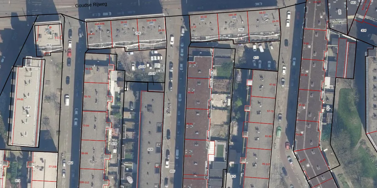 Het adres ligt op het perceel RTD04-AE-973, dat zich in de kadastrale gemeente Rotterdam bevindt. De oppervlakte van het perceel is 3975 m². Dat is groter dan gemiddeld in Rotterdam, waar de gemiddelde perceeloppervlakte op 1239,97 m² ligt. Het grootste perceel in de kadastrale gemeente is 17,3 ha. Het kleinste perceel heeft een oppervlakte van 0 m². Op het perceel zijn 91 adressen aanwezig. De huidige grenzen van het perceel zijn digitaal in de Basisregistratie Kadaster (BRK) geregistreerd op 04-05-2007.