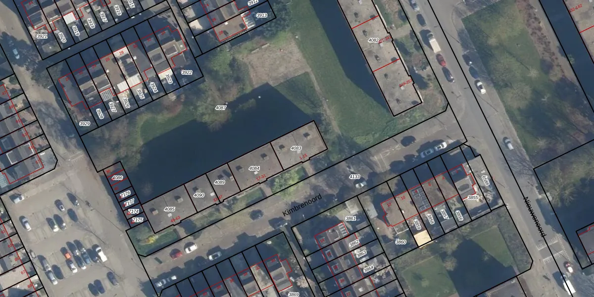 Kimbrenoord 13 is gelegen op kadastraal perceel ISM01B4083. Deze kadastrale aanduiding is uniek en wordt gebruikt door het Kadaster om eigendomsrechten en andere zakelijke rechten vast te leggen. Het perceel maakt onderdeel uit van de kadastrale gemeente IJsselmonde.