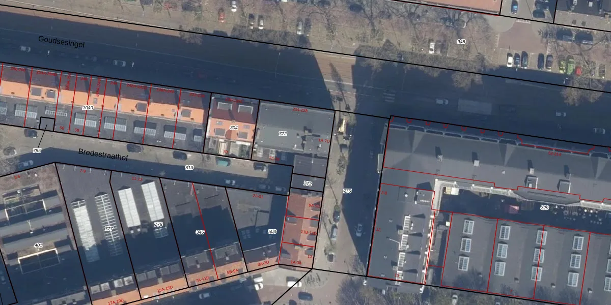 Het adres ligt op het perceel RTD04-AF-772, dat zich in de kadastrale gemeente Rotterdam bevindt. Het perceel is kleiner dan gemiddeld in Rotterdam. Het perceel is 524 m² groot, terwijl het gemiddelde ligt op 1240,47 m². Het kleinste perceel in de kadastrale gemeente is 0 m² groot. De grootste perceeloppervlakte is 17,3 ha. Op het perceel zijn 24 adressen aanwezig. De laatste wijziging in het de Basisregistratie Kadaster (BRK) was op 20-01-2003.