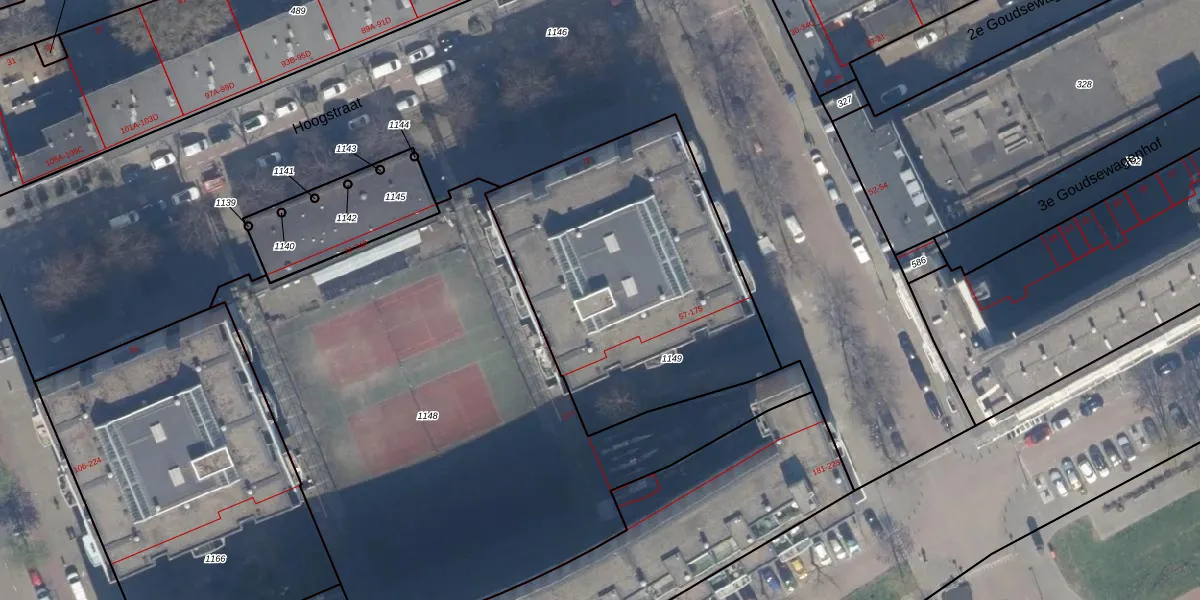 Het adres ligt op het perceel RTD04-AF-1149, dat zich in de kadastrale gemeente Rotterdam bevindt. De gemiddelde perceeloppervlakte in de kadastrale gemeente Rotterdam is 1240,47 m². Dit perceel is met zijn 1544 m² dus groter dan gemiddeld. De grootste perceeloppervlakte in de kadastrale gemeente is 17,3 ha. De kleinste oppervlakte bedraagt 0 m². Op het perceel zijn 56 adressen aanwezig. De laatste wijziging in het de Basisregistratie Kadaster (BRK) was op 09-01-2003.