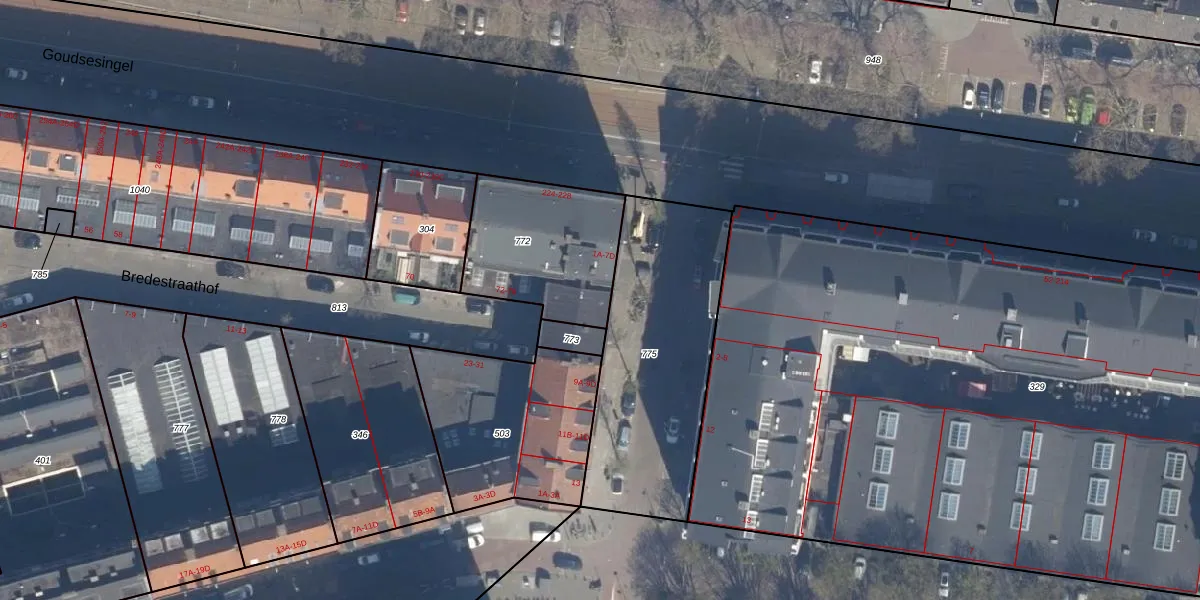 Het adres ligt op het perceel RTD04-AF-772, dat zich in de kadastrale gemeente Rotterdam bevindt. Het perceel is kleiner dan gemiddeld in Rotterdam. Het perceel is 524 m² groot, terwijl het gemiddelde ligt op 1240,47 m². Het kleinste perceel in de kadastrale gemeente is 0 m² groot. De grootste perceeloppervlakte is 17,3 ha. Op het perceel liggen in totaal 24 adressen. In de Basisregistratie Kadaster (BRK) werden de grenzen van het perceel geregistreerd op 20-01-2003.