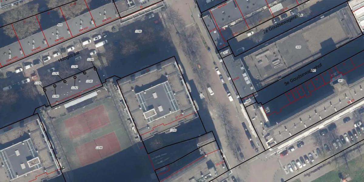 Het perceel waarop het adres ligt is RTD04-AF-1149. De afkorting 'RTD04' staat voor kadastrale gemeente Rotterdam. Het perceel is met 1544 m² relatief groot. Het gemiddelde ligt in de kadastrale gemeente Rotterdam op 1240,47 m². Het kleinste perceel in de kadastrale gemeente is 0 m² groot. De grootste perceeloppervlakte is 17,3 ha. Op het perceel liggen in totaal 56 adressen. De laatste wijziging in het de Basisregistratie Kadaster (BRK) was op 09-01-2003.