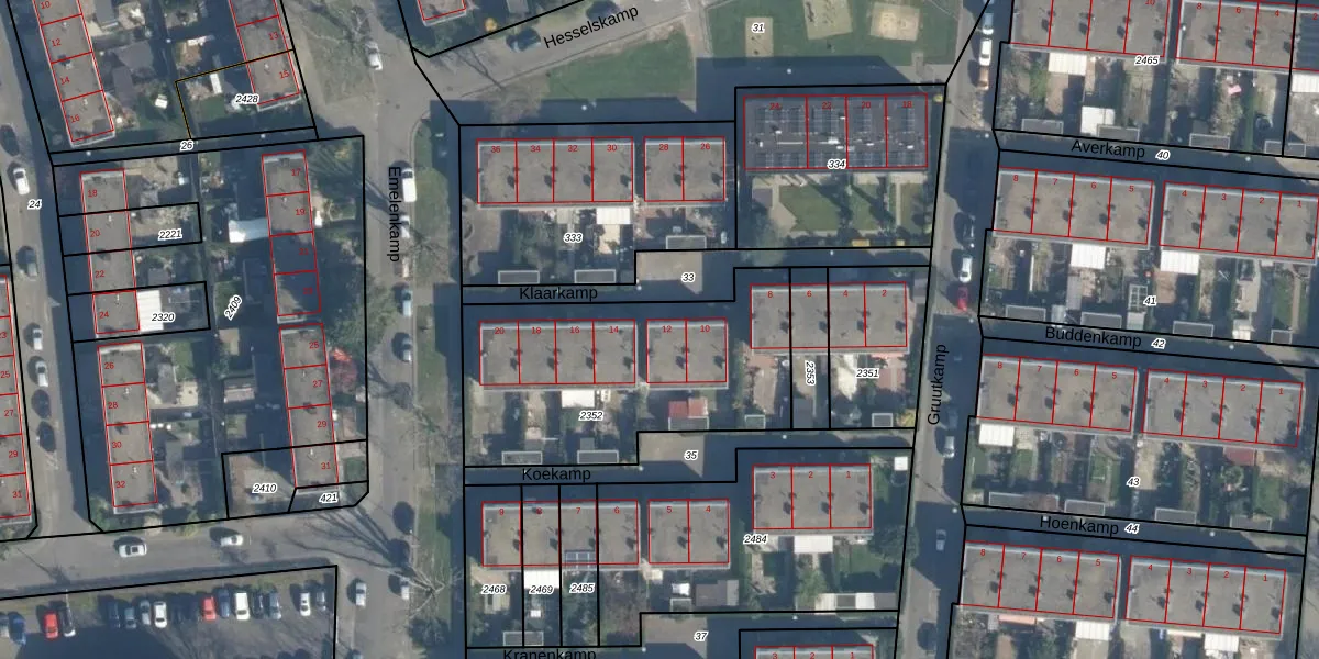 Klaarkamp 12 is gelegen op kadastraal perceel CLS00K2352. Deze kadastrale aanduiding is uniek en wordt gebruikt door het Kadaster om eigendomsrechten en andere zakelijke rechten vast te leggen. Het perceel maakt onderdeel uit van de kadastrale gemeente Charlois.