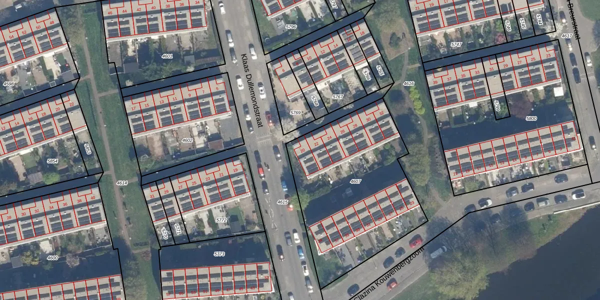 Het perceel waarop Klaas Dullemondstraat 20 staat heeft een oppervlakte van 1773 m². Dit is een zeer groot perceel. De perceeloppervlakte wordt geregistreerd door het Kadaster. Gedetailleerde informatie over de maten van dit perceel kunt u vinden in het rapport Kadastrale kaart met maatvoering van Klaas Dullemondstraat 20.