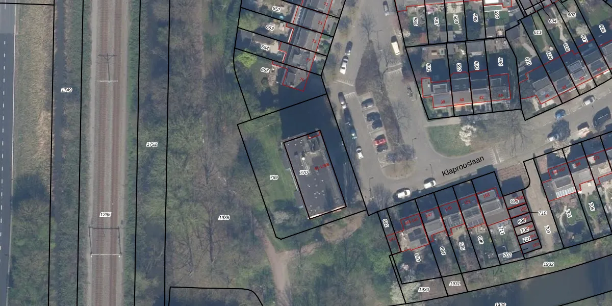 Het perceel waarop Klaprooslaan 119 staat heeft een oppervlakte van 332 m². Dit is een groot perceel. De perceeloppervlakte wordt geregistreerd door het Kadaster. Gedetailleerde informatie over de maten van dit perceel kunt u vinden in het rapport Kadastrale kaart met maatvoering van Klaprooslaan 119.