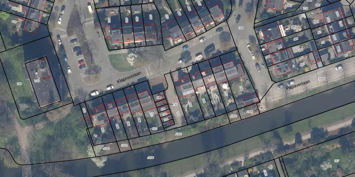 Het perceel waarop Klaprooslaan 165 staat heeft een oppervlakte van 311 m². Dit is een groot perceel. De perceeloppervlakte wordt geregistreerd door het Kadaster. Gedetailleerde informatie over de maten van dit perceel kunt u vinden in het rapport Kadastrale kaart met maatvoering van Klaprooslaan 165.