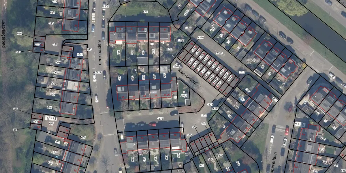Het perceel waarop Klaprooslaan 26 staat heeft een oppervlakte van 213 m². Dit is een middelgroot perceel. De perceeloppervlakte wordt geregistreerd door het Kadaster. Gedetailleerde informatie over de maten van dit perceel kunt u vinden in het rapport Kadastrale kaart met maatvoering van Klaprooslaan 26.