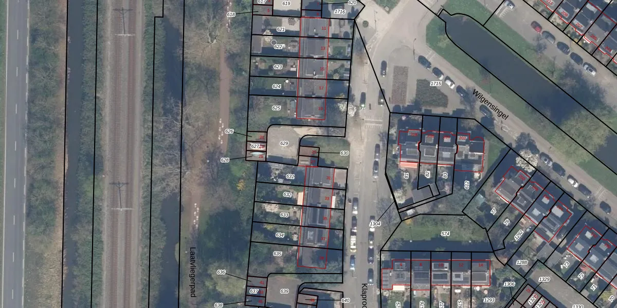 Het perceel waarop Klaprooslaan 29 staat heeft een oppervlakte van 21 m². Dit is een klein perceel. De perceeloppervlakte wordt geregistreerd door het Kadaster. Gedetailleerde informatie over de maten van dit perceel kunt u vinden in het rapport Kadastrale kaart met maatvoering van Klaprooslaan 29.