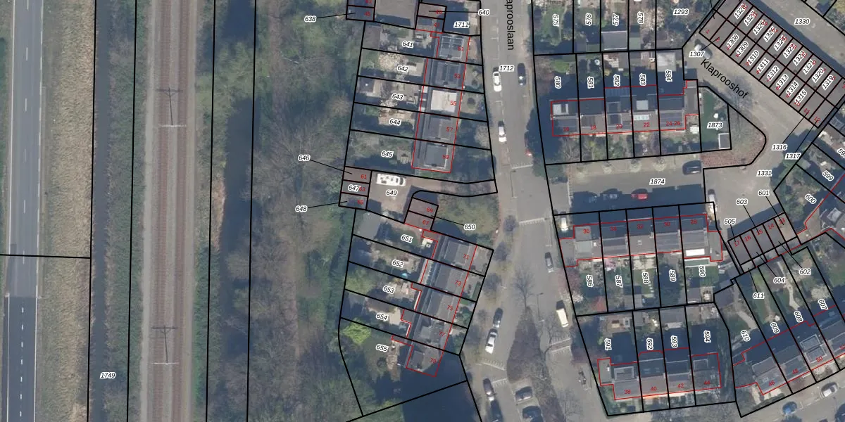Het perceel waarop Klaprooslaan 69 staat heeft een oppervlakte van 21 m². Dit is een klein perceel. De perceeloppervlakte wordt geregistreerd door het Kadaster. Gedetailleerde informatie over de maten van dit perceel kunt u vinden in het rapport Kadastrale kaart met maatvoering van Klaprooslaan 69.