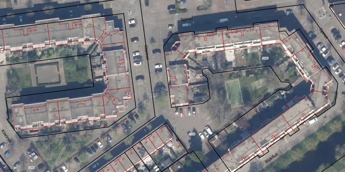 Het perceel waarop Klarinet 20 staat heeft een oppervlakte van 4425 m². Dit is een zeer groot perceel. De perceeloppervlakte wordt geregistreerd door het Kadaster. Gedetailleerde informatie over de maten van dit perceel kunt u vinden in het rapport Kadastrale kaart met maatvoering van Klarinet 20.