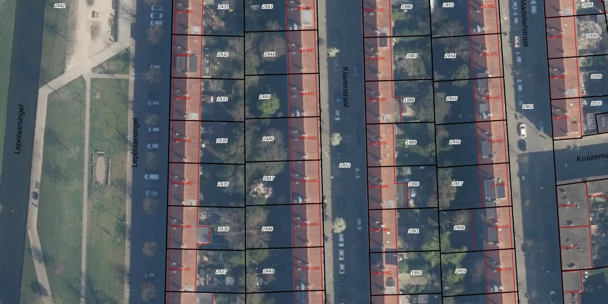 Klaverstraat 101-A is gelegen op kadastraal perceel CLS00H2446. Deze kadastrale aanduiding is uniek en wordt gebruikt door het Kadaster om eigendomsrechten en andere zakelijke rechten vast te leggen. Het perceel maakt onderdeel uit van de kadastrale gemeente Charlois.