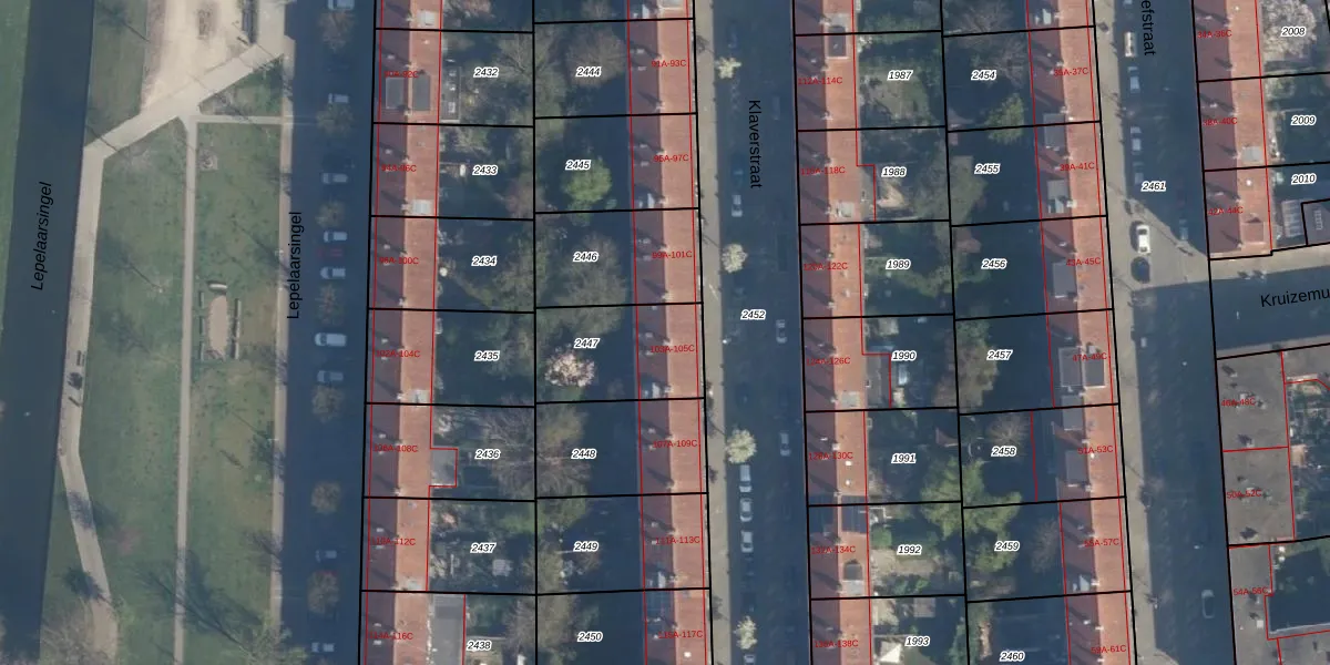 Klaverstraat 103-C is gelegen op kadastraal perceel CLS00H2447. Deze kadastrale aanduiding is uniek en wordt gebruikt door het Kadaster om eigendomsrechten en andere zakelijke rechten vast te leggen. Het perceel maakt onderdeel uit van de kadastrale gemeente Charlois.