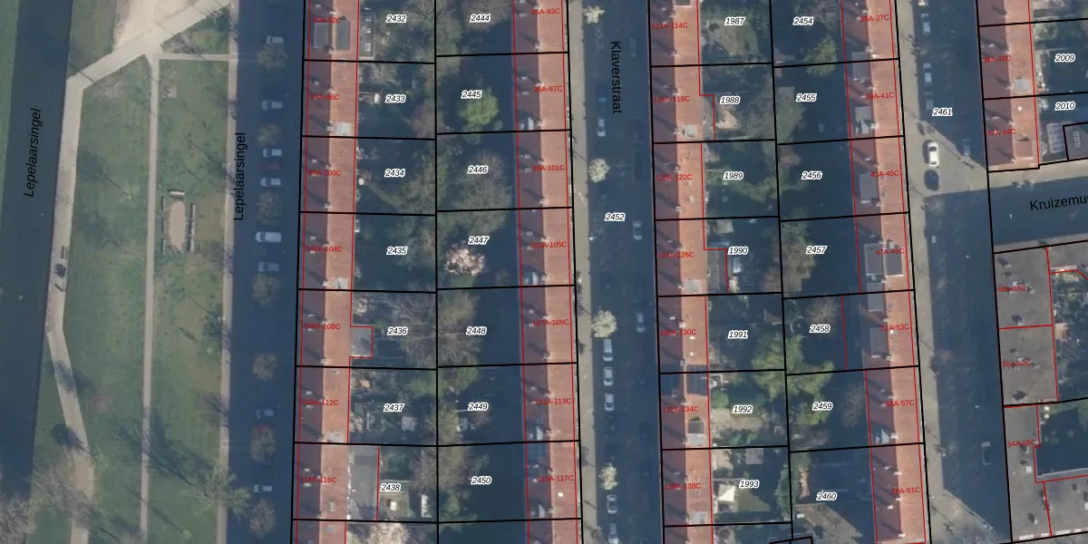 Klaverstraat 105-B is gelegen op kadastraal perceel CLS00H2447. Deze kadastrale aanduiding is uniek en wordt gebruikt door het Kadaster om eigendomsrechten en andere zakelijke rechten vast te leggen. Het perceel maakt onderdeel uit van de kadastrale gemeente Charlois.
