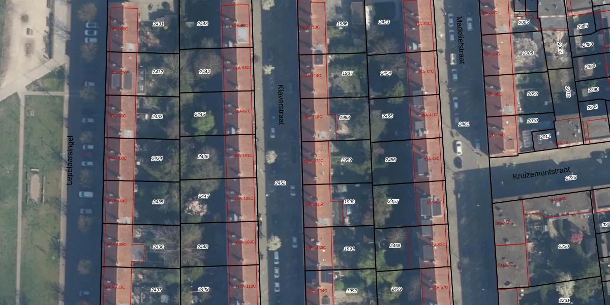 Het perceel waarop Klaverstraat 120-B staat heeft een oppervlakte van 323 m². Dit is een groot perceel. De perceeloppervlakte wordt geregistreerd door het Kadaster. Gedetailleerde informatie over de maten van dit perceel kunt u vinden in het rapport Kadastrale kaart met maatvoering van Klaverstraat 120-B.