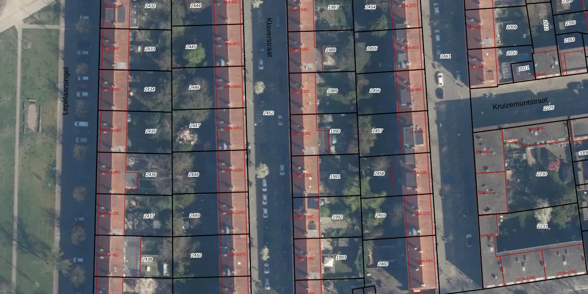 Het perceel waarop Klaverstraat 126-A staat heeft een oppervlakte van 327 m². Dit is een groot perceel. De perceeloppervlakte wordt geregistreerd door het Kadaster. Gedetailleerde informatie over de maten van dit perceel kunt u vinden in het rapport Kadastrale kaart met maatvoering van Klaverstraat 126-A.