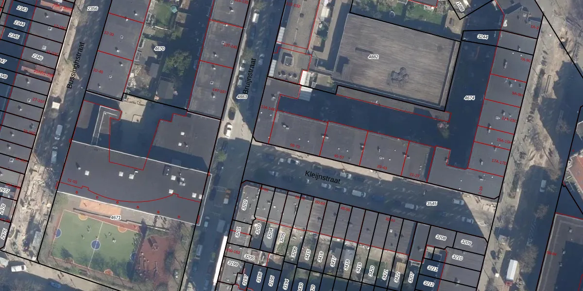 Het perceel waarop Kleijnstraat 65 staat heeft een oppervlakte van 3835 m². Dit is een zeer groot perceel. De perceeloppervlakte wordt geregistreerd door het Kadaster. Gedetailleerde informatie over de maten van dit perceel kunt u vinden in het rapport Kadastrale kaart met maatvoering van Kleijnstraat 65.
